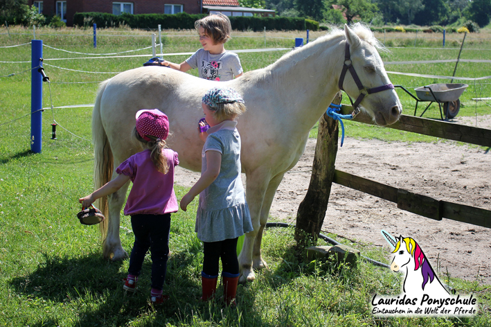❌ Die Pferde werden den Kindern nicht fertig gebracht und danach einfach abgestellt, sondern liebevoll auf das Reiten vorbereitet. Die Kinder